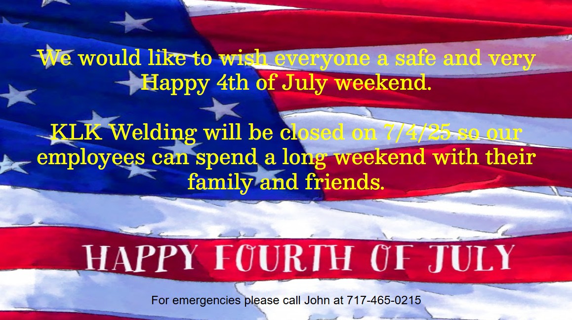 Happy 4th of July - we will be closed on Friday 7/4/25 - KLK Welding